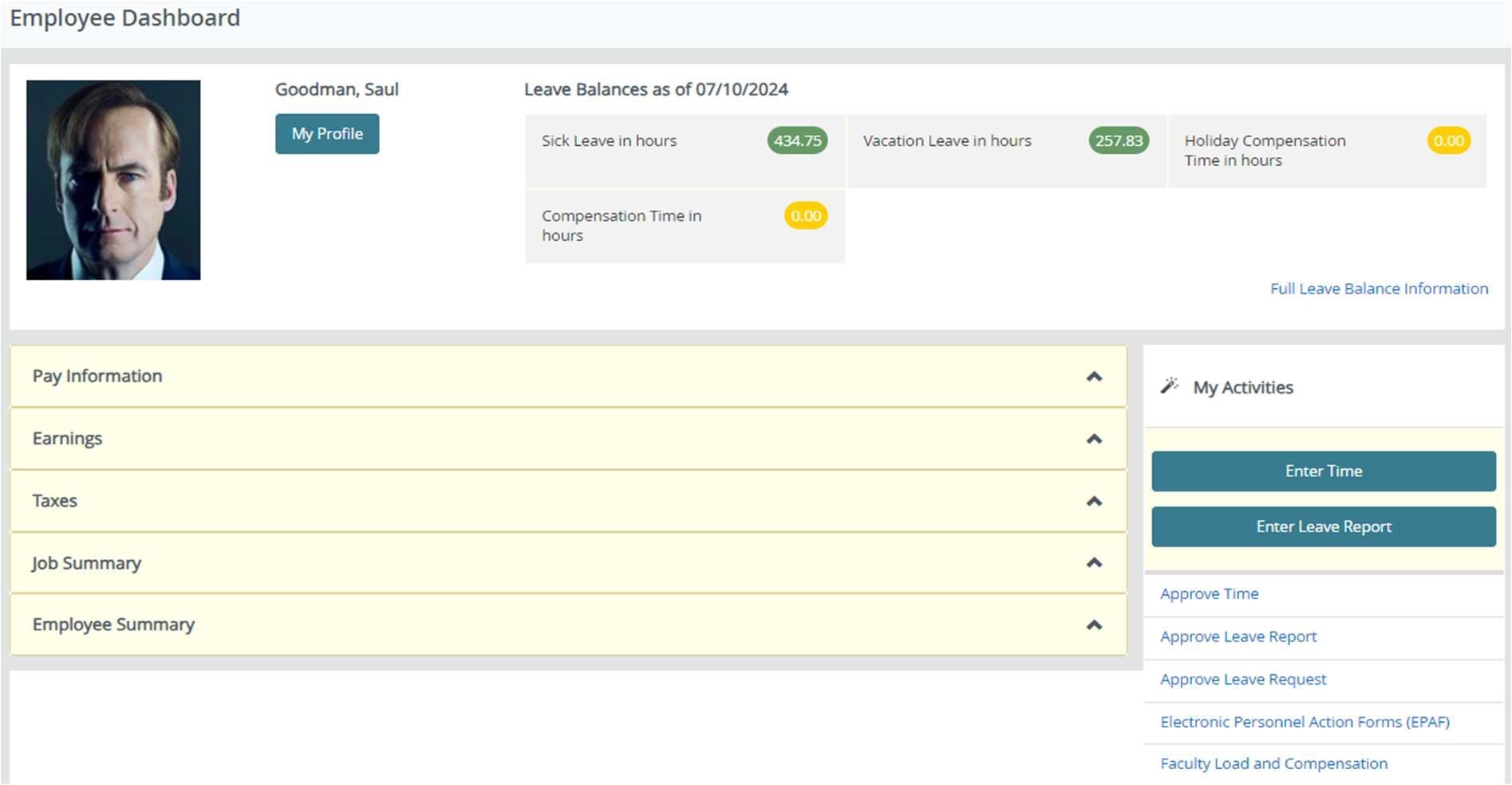 2. You will now see your full leave balance information page.