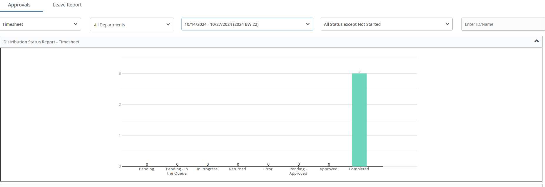 - You can select which pay period you are approving and you can sort by many things (example: not started, pending, in progress, person’s name, etc.)