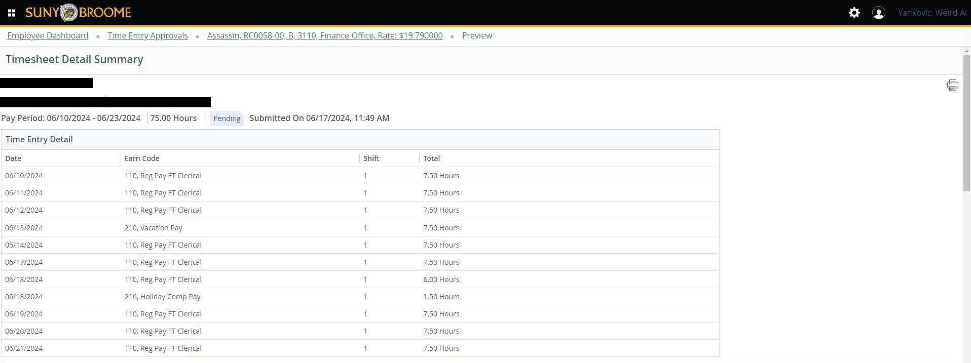 - When you select the person’s name, you will see their timesheet and can approve, return for correction or make changes (details) from that screen.