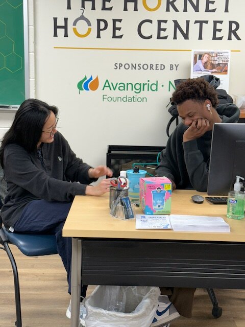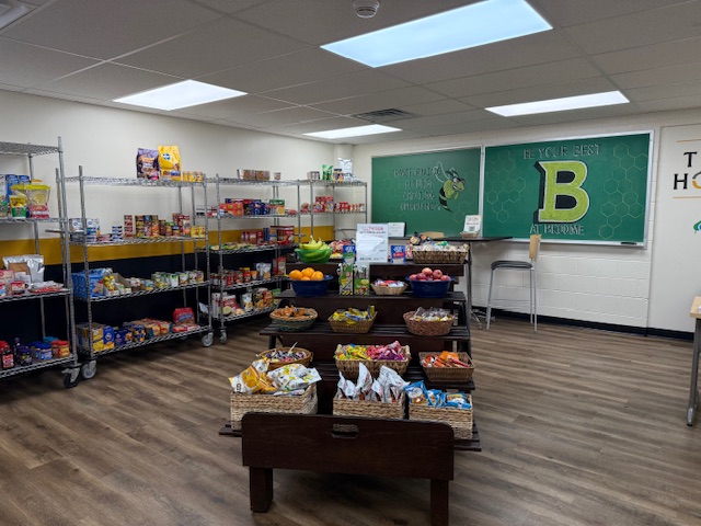 The Hornet Hope Center offers non-perishables, refrigerated, and frozen foods. Clothing and hygiene products and some basic school supplies are also available for students as supplies allow.